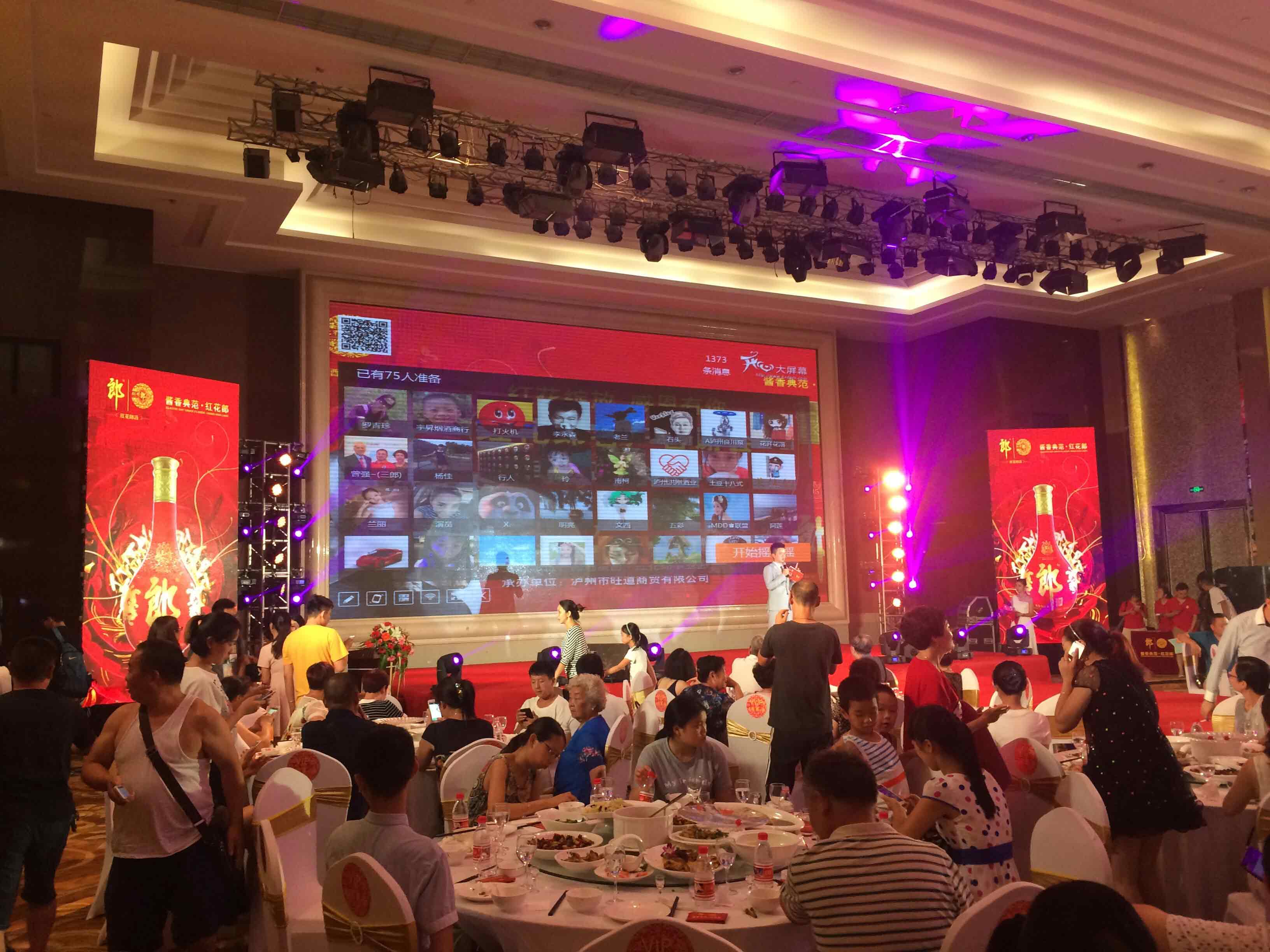 7月29日,炫驰微互动受红花郎集团邀请,作为“红花郎客户答谢会暨巨星见面会·泸州站”活动的现场互动技术支持者,让在场的尊贵来宾感受了一次别开生面的互动体验。此次活动已是红花郎三度牵手炫驰微互动,主办方选择消息墙、摇一摇分别在暖场候场和中场竞技环节当中使用,消息墙可以有效的增强台上台下的交流互动,让来宾通过手机发送图文信息进行现场大屏幕的“上墙”展示,而摇一摇是为炫驰微互动最受欢迎的竞技功能之一,调节气氛,制造高潮更是得心应手!值得一提的是,“好男人”张镐哲亲临活动现场,一口气献唱四首经典老歌!科技互动+明星效应=最火爆的活动现场!