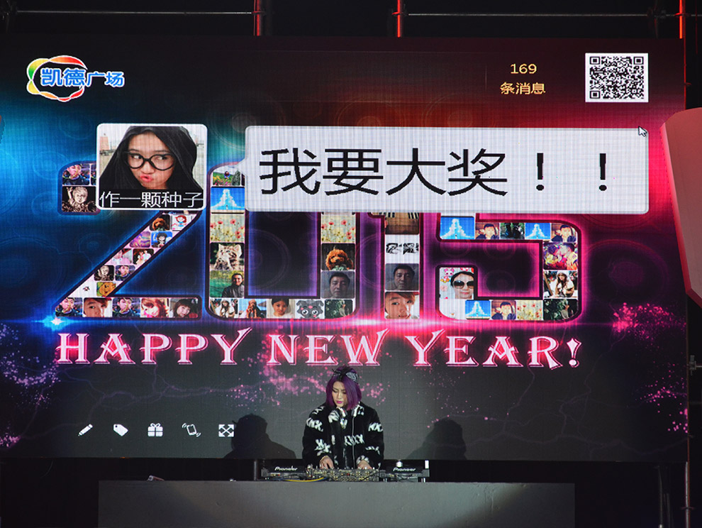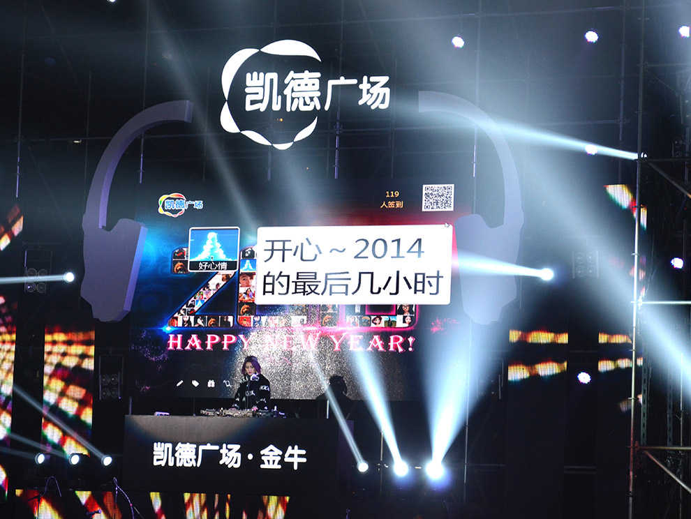 跨年夜宅家看电视?您out了!炫驰微互动在金牛凯德广场相约2015!酷炫的舞台,劲爆的音乐,变幻的灯光特效,还有炫驰微互动助燃火热现场!2015,怎么能不向幸福出发!