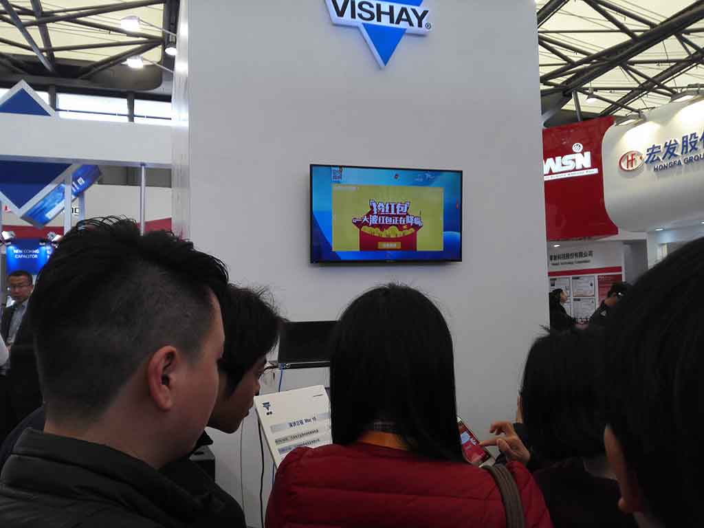 2016年3月,炫驰微互动受到威世科技的邀请,来到上海新国际博览中心参加慕尼黑电子展览。众多的展位面前人来人往,参展商如何吸引受众的注意成为了最大的问题,而VISHAY的展位前总是人头攒动,秘诀是什么呢?当然是炫驰微互动的倾力助阵啦!使用炫驰微互动整点抢现金红包,只需拿出手机扫码签到即可参与,简单刺激,展会也能互动新花样!