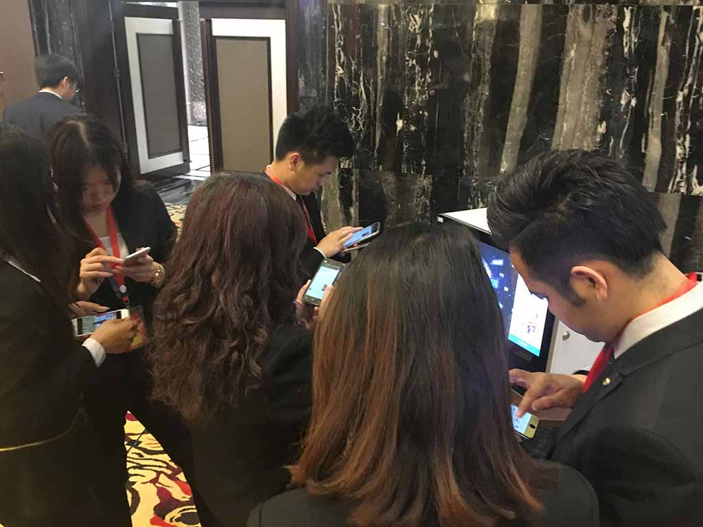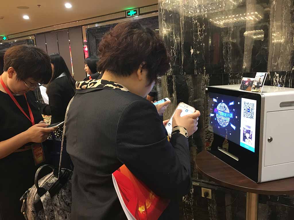 4月16日,炫驰微互动受邀参加中国太平人寿年度高峰论坛会议活动。本次会议的互动环节选择了炫驰微互动的滚动抽奖、标星消息、图片库、微信打印机等功能。微信打印机是一款即时打印照片的设备,来宾通过扫描二维码--上传照片--输入打印码,等待30S后即可取出自己的美照啦!在签到处摆上一台微信打印机,来宾在入场和退场时就可到此处打印照片作为留念,特别受女来宾的青睐哦!