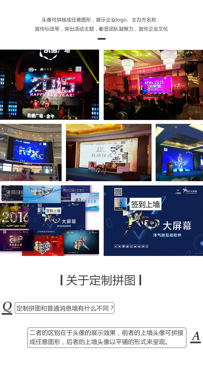 签到来宾的头像可拼接成主办方logo、企业名称、或当场活动相关的任意图形。