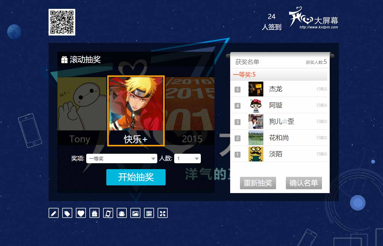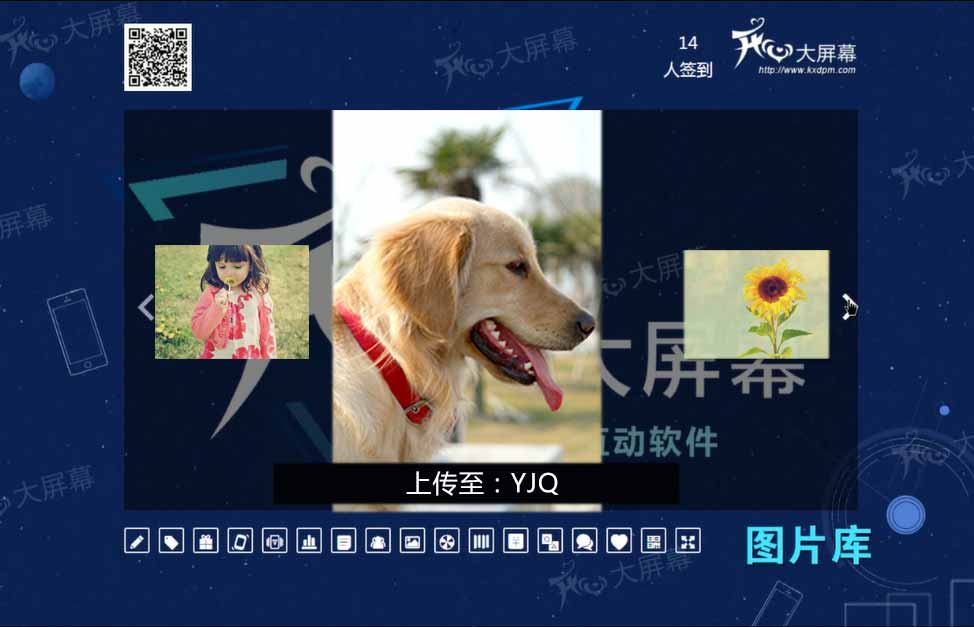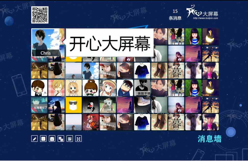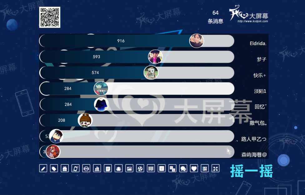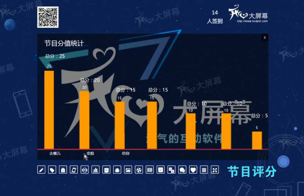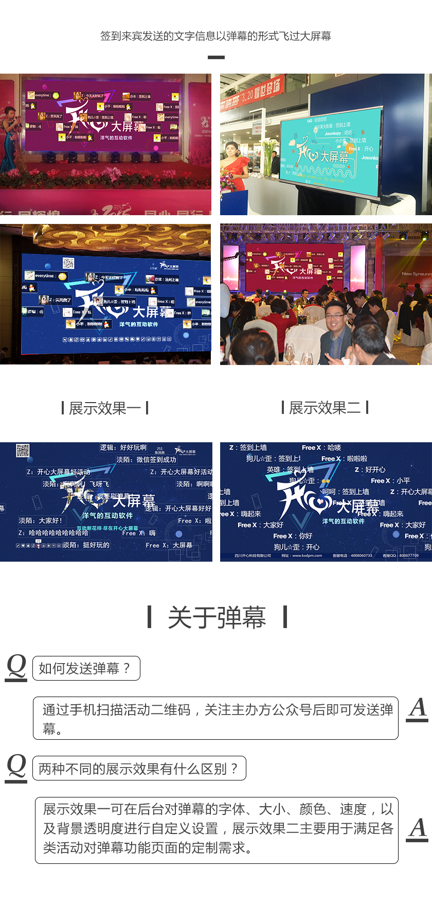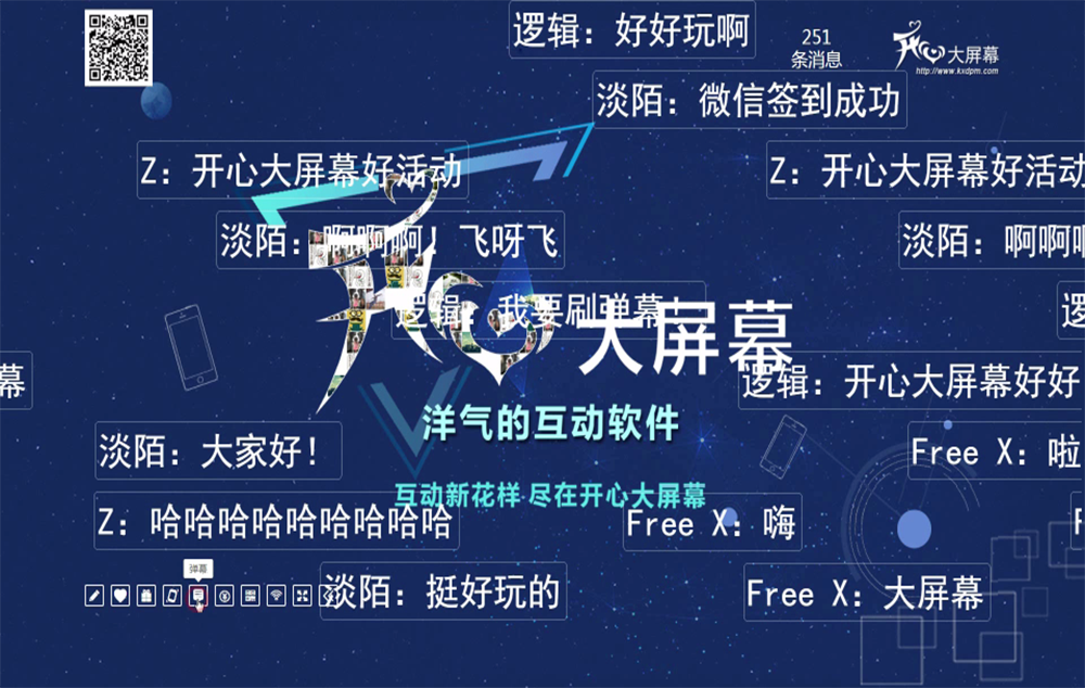 签到来宾向大屏幕发送文字信息,这些文字信息将以弹幕的形式飞过大屏幕。