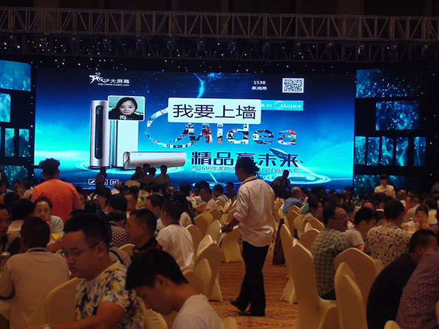 炎炎夏日,贪凉怎能没有美的!激情似火的8月,炫驰微互动来到成都新津,欢乐助力美的西南大区经销商会议!各类美的新产品悉数亮相,让我们在场的大屏幕执行人员是直呼冷气十足啊!会场冷点不要紧,可现场气氛是万万冷不得!就会议活动而言,一般持续时间较长,传达内容多且气氛较为严谨,主办方精心筹备数日,活动效果却往往不尽如意,来宾现场打瞌睡,玩手机,聊天,会议要点是丝毫没记下。解决这类难题,当然得靠炫驰微互动撑场了!大家纷纷拿起手机向炫驰微互动发送对此次活动和美的的祝福,更是在聊天室来了个全场大群聊!随即进行抽桌奖活动,这是炫驰微互动的程序猿为本次活动特别定制的,偌大的会场,惊呼声全场回荡!“冷场”找美的!“热场”当然是炫驰微互动了!