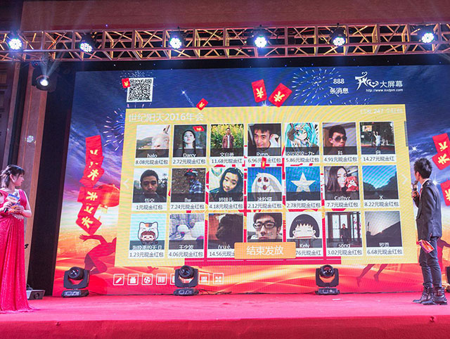 年会若要嗨翻天怎么少得了炫驰微互动助阵!2016年的崭新开始,炫驰微互动继续相约世纪阳天的小伙伴们!这次我们带着M3D惊艳亮相啦!M3D运用于签到、抽奖、启动仪式等环节,给现场来宾打造了一个裸眼3D的盛宴,如此别样的互动体验更是让大家惊艳连连,而后的抢红包和开心答题环节,更是将现场的氛围推致最高潮,惊喜不断!