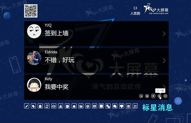 将重要来宾所发送的消息标星后即可在大屏幕进行标星展示。
