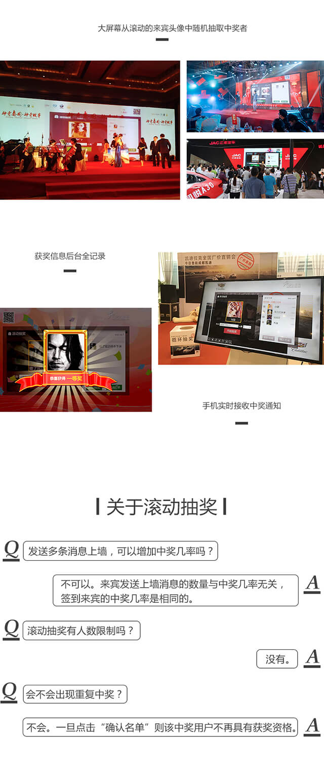 大屏幕滚动全场签到来宾头像,并从中随机抽取中奖者。
